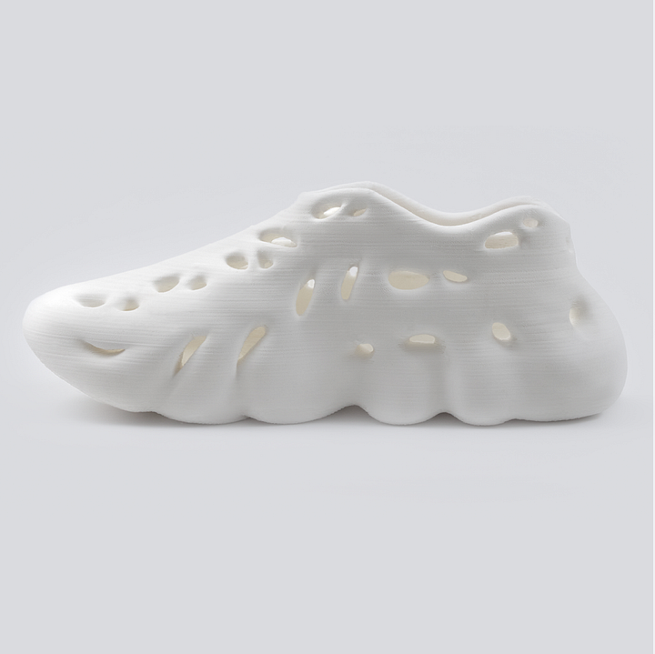Like concrete for construction, the single most important material for traditional footwear is polymeric foam. Foam can be lightweight, soft and resilient. Crocs are so comfortable and light because they are made from foam. But the problem is that 3D printing with foams is hard. What 3D printing companies have been doing is replicating foams with 3D lattice structures.